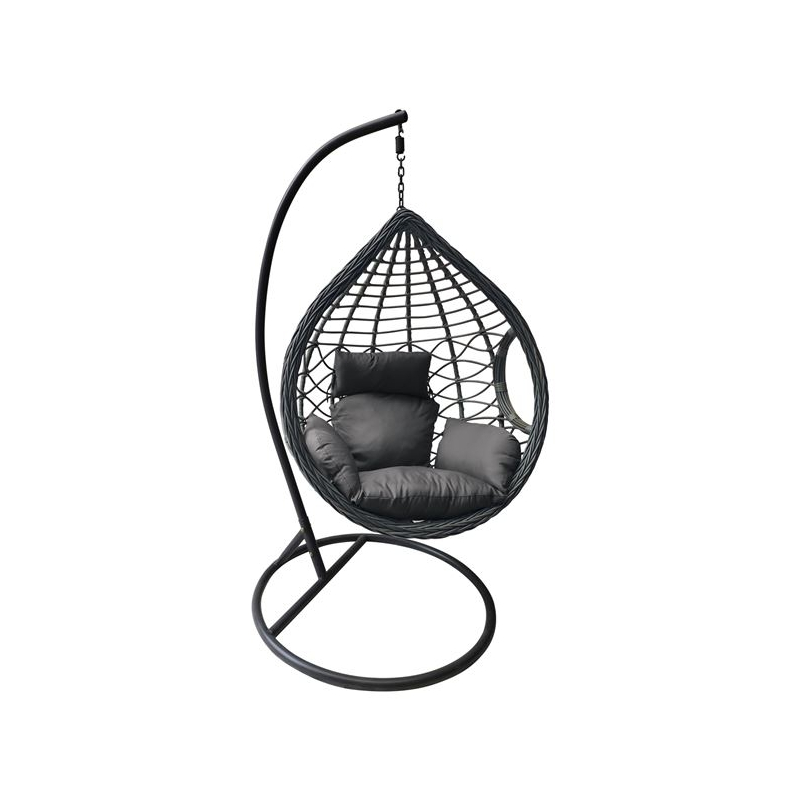 MADRID Κρεμαστή Πολυθρόνα, Wicker Grey, Μέταλλο Βαφή Ανθρακί, Μαξιλάρι Γκρι Φ105x197cm