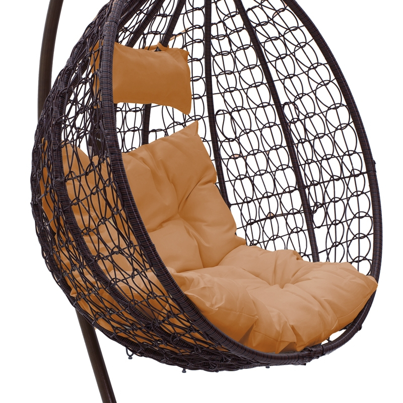 Κούνια Zafer pakoworld κρεμαστή μέταλλο-pp καφέ σφ.-μαξιλάρι μπεζ 106x103x200εκ