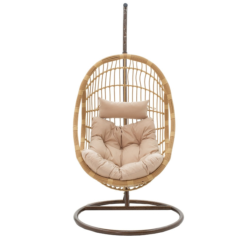 Κούνια Lacie pakoworld κρεμαστή μέταλλο καφέ-pe φυσικό-μαξιλάρι μπεζ