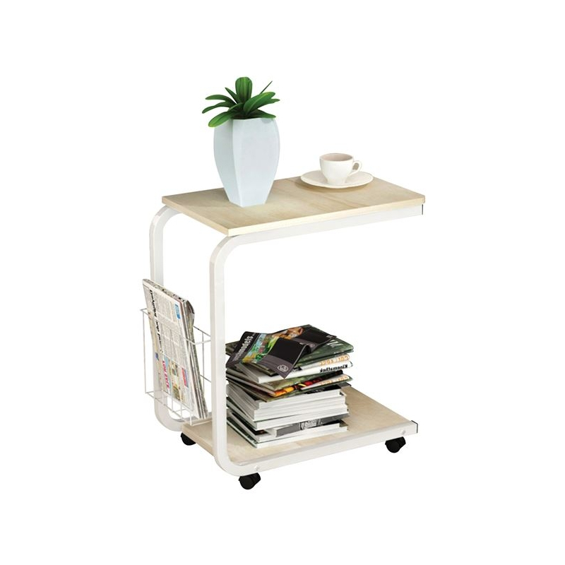 LAP Βοηθητικό Τραπεζάκι, Μέταλλο Βαφή Άσπρο, Απόχρωση Maple 56x30x59cm
