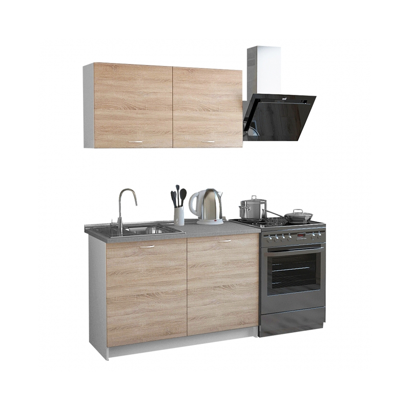 Σύνθεση Κουζίνας, σε απόχρωση sonama - λευκό  120x46-29,2εκ.  Οι έτοιμες συνθέσεις κουζίνας καλύπτουν τις βασικές ανάγκες του χώρου σας, κυρίως αν χρειάζεστε μια μικρή κουζίνα με όλο τον απαραίτητο αποθηκευτικό χώρο.  Αν αναζητάτε μια οικονομική λύση, σε μικρή, ευθεία κουζίνα, κατασκευασμένη από εξαιρετικής ποιότητας μελαμίνη, πάχους 16mm, με κλειστούς αποθηκευτικούς χώρους, ντουλάπια, στα οποία μπορείτε να αποθηκεύσετε όλα τα είδη σερβιρίσματος και τα σκεύη κουζίνας,  τότε έχετε βρει το κατάλληλο προϊόν.  Το προϊόν αποτελεί μια ιδανική πρόταση για ενοικιαζόμενα δωμάτια, ξενοδοχεία, γραφεία, επαγγελματικούς χώρους και φοιτητικές ή εξοχικές κατοικίες.  Γενικές διαστάσεις επιτοίχιας μονάδας: 120x29,2x59,4Υ εκ.  Γενικές διαστάσεις επιδαπέδιας μονάδας: 120x46x81,8Υ εκ. Διαστάσεις αριστερού ντουλαπιού: 60x46x71,8Υ εκ. Διαστάσεις δεξιού ντουλαπιού: 60x46x71,8Υ εκ. Ύψος μπάζας: 10 εκ. Ο πάγκος του διπλού ντουλαπιού δεν συμπεριλαμβάνεται.  Πάχος μελαμίνης: 16 mm. Ευρωπαϊκής προέλευσης και κατασκευής   * Δεν συμπεριλαμβάνονται οι ηλεκτρικές συσκευές, ο νεροχύτης, ο πάγκος και τα σκεύη κουζίνας. * Προτείνεται πάγκος 120x60 εκ. με νεροχύτη ένθετο.