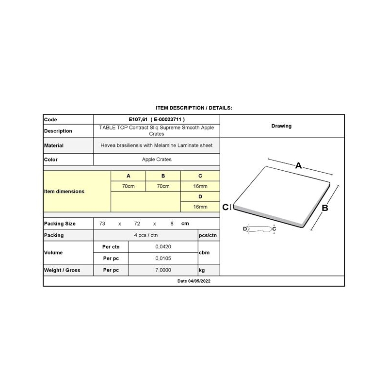 Contract Sliq Smooth Supreme Επιφάνεια Τραπεζιού τ.Werzalit Απόχρωση Apple Crates 70x70cm/16mm