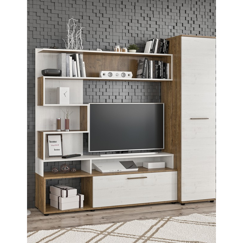 Σύνθετο σαλονιού Jasper pakoworld καρυδί-αντικέ λευκό 151.5x37.5x169.5εκ