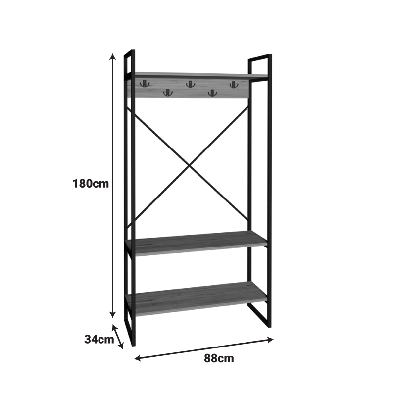 Έπιπλο εισόδου Levento pakoworld oak με μαύρο μεταλλικό σκελετό 88x34x180εκ