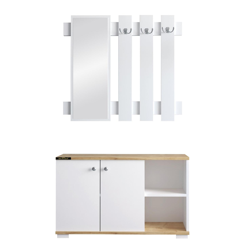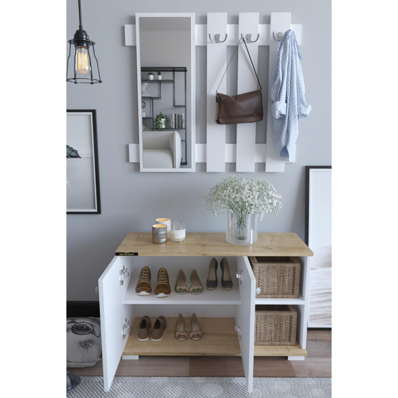 Έπιπλο Εισόδου ArteLibre Με Καθρέπτη BOKANG Δρυς/Λευκό Μοριοσανίδα/Γυαλί 90x33x90cm