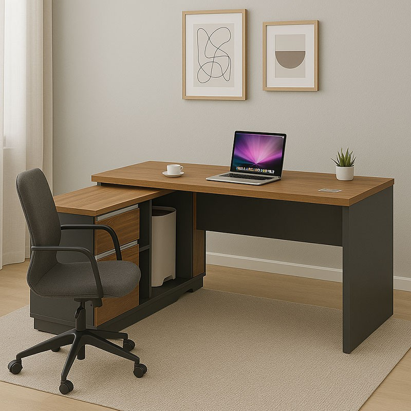 - Κύριο γραφείο: Επιφάνεια κατασκευασμένη 25 χιλ από μοριοσανίδα υψηλής ποιότητας με επένδυση μελαμίνης.