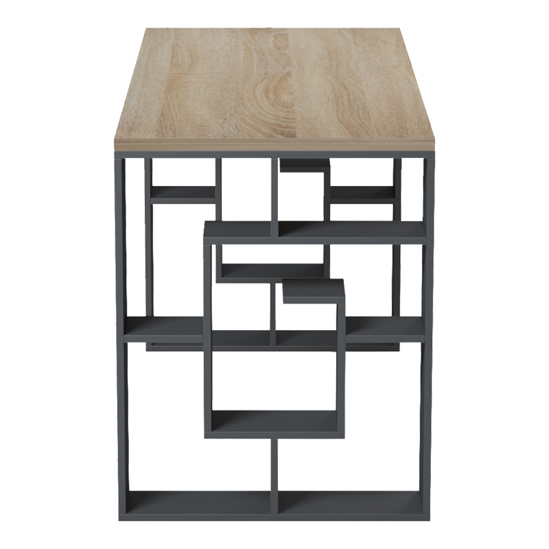 Γραφείο με ραφιέρα Labirent pakoworld ανθρακί-sonoma 140x60x75εκ