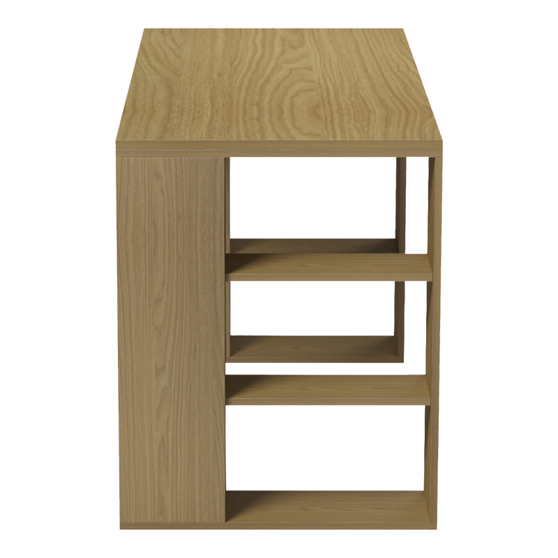 - Οι δύο πλευρικές βάσεις λειτουργούν ως ενσωματωμένες ραφιέρες, προσφέροντας συνολικά έξι (6) ανοιχτά ράφια για την εύκολη οργάνωση βιβλίων, φακέλων ή διακοσμητικών αντικειμένων, διατηρώντας την επιφάνεια εργασίας καθαρή.