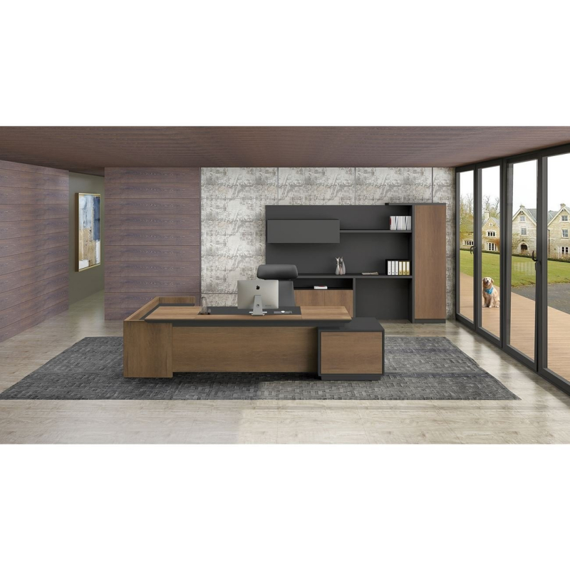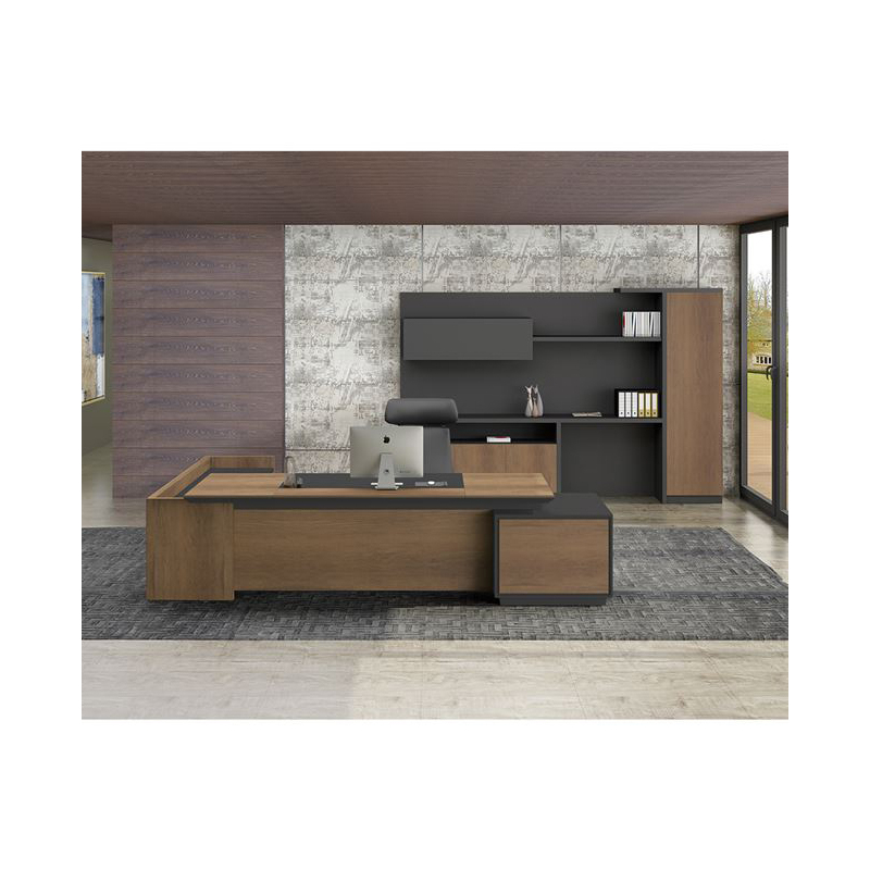 ΕΟ964,R PROLINE Γραφείο -Δεξ-220x200cm απόχρ.Καρυδί Δρυς/Μαύρο