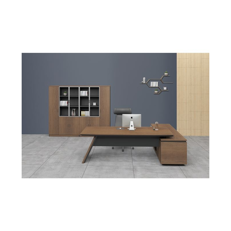 PROLINE Γραφείο Αριστερή Γωνία Απόχρωση Καρυδί Δρυς - Μαύρο 240x95/200x50 H.76/63cm