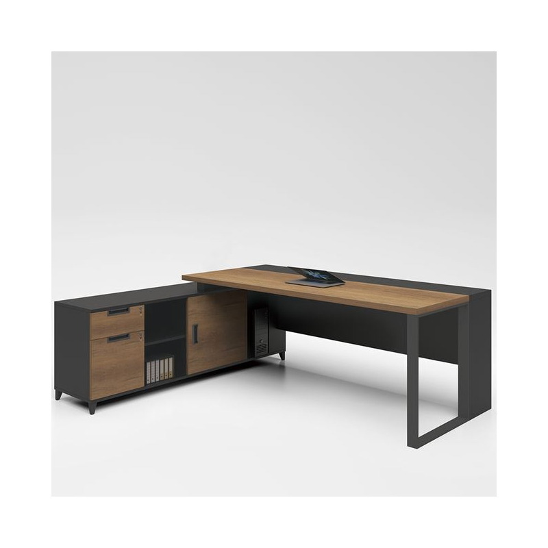 PROLINE Γραφείο Αναστρέψιμη Γωνία, 3 Συρτάρια, Ράφια, Απόχρωση Καρυδί Δρυς - Μαύρο 180x70/160x40 (H.75)cm