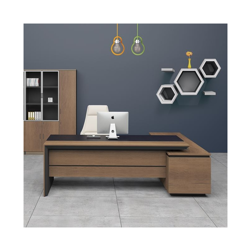 PROLINE Γραφείο Αριστερή Γωνία Απόχρωση Καρυδί Δρυς - Μαύρο 200x85/180x40 H.75/63cm