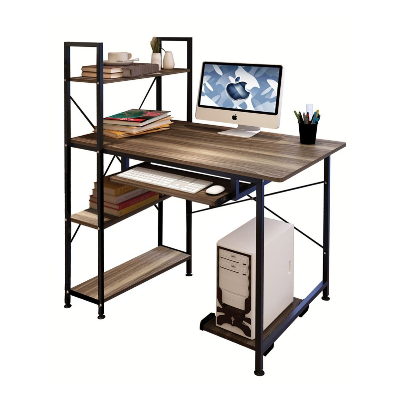ΓΡΑΦΕΙΟ 4 Ράφια - Βάση Η/Υ - Συρταρωτή Θέση Πληκτρολογίου, Μέταλλο Μαύρο, Καρυδί 100x48x73/118cm