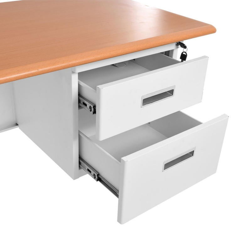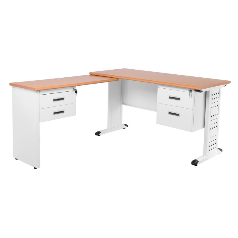 ΓΡΑΦΕΙΟ Γωνία, Μέταλλο Βαφή Άσπρο, Επιφάνεια Απόχρωση Maple 140x100x60/45cm H.75/72cm