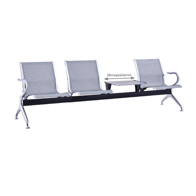 Ε502,01 Κάθισμα Αναμονής 3θέσιο+Τραπέζι Χρώμιο/Mesh Γκρι