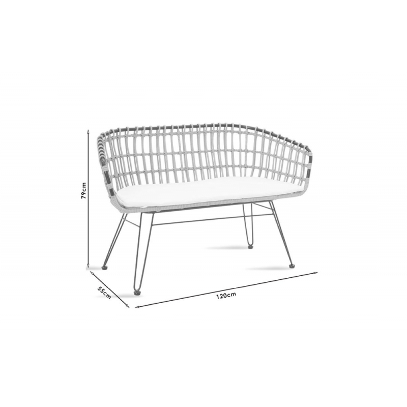 Καναπές 2θέσιος Naoki pakoworld μέταλλο μαύρο-pe φυσικό 120x55x79εκ