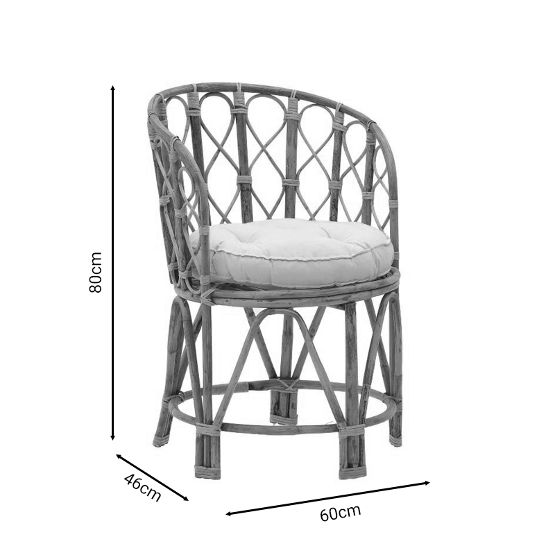 * Κατασκευή από cane εξαιρετικής ποιότητας με μεγάλη αντοχή σε φθορά, χρόνο και χρήση. Το "cane" αναφέρεται συνήθως στο υλικό που προέρχεται από το φυτό "rattan" (ρατάν), το οποίο είναι ένας τύπος φυτού που ανήκει στην οικογένεια των palm. Το ρατάν είναι γνωστό για την ευκαμψία και την ανθεκτικότητά του και χρησιμοποιείται ευρέως στην κατασκευή επίπλων και διακοσμητικών αντικειμένων. ίναι δημοφιλές λόγω της φυσικής του εμφάνισης και της δυνατότητάς του να προσθέσει έναν αέρα φυσικής γοητείας στον χώρο.