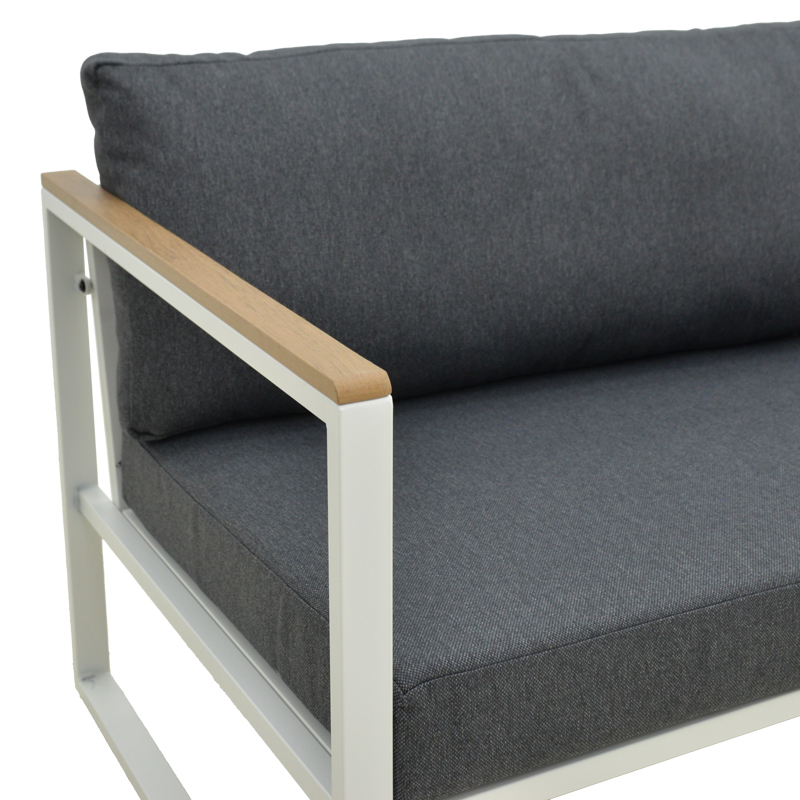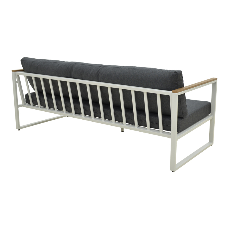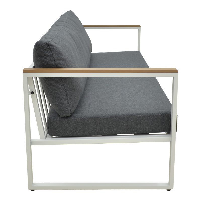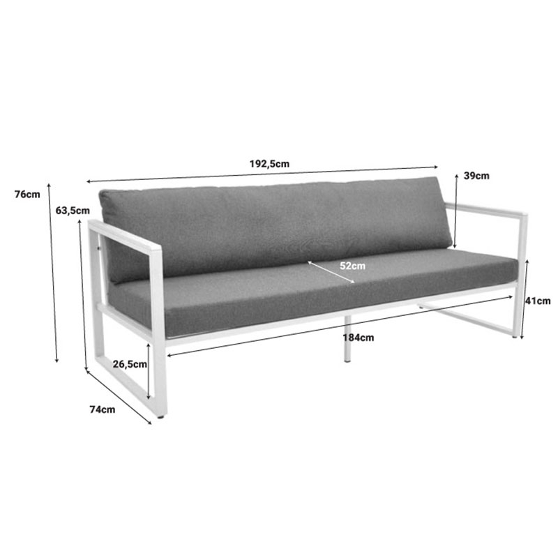 Μοντέρνος 3θέσιος Καναπές – Άνεση & Αντοχή σε Τέλεια Ισορροπία Αναβαθμίστε τον εξωτερικό ή εσωτερικό σας χώρο με τον 3θέσιο καναπέ Aurelio. Με στιβαρό ατσάλινο σκελετό και κομψές, μοντέρνες γραμμές, συνδυάζει στυλ, άνεση και μακροχρόνια αντοχή. Τα μπράτσα με επένδυση plywood προσθέτουν μια φυσική πινελιά, ενώ τα πλούσια μαξιλάρια εξασφαλίζουν μια premium εμπειρία καθίσματος. Τεχνικά χαρακτηριστικά: Στιβαρή Κατασκευή: Ατσάλινος σκελετός υψηλής ποιότητας (30?20?1.0mm & 20?20?0.9mm) για εξαιρετική αντοχή και σταθερότητα. Κομψή Λεπτομέρεια: Μπράτσα με plywood (3?1.3 cm) που χαρίζουν ζεστασιά και μοντέρνα αισθητική. Απόλυτη Άνεση: Μαξιλάρια καθίσματος και πλάτης με ύφασμα 100% πολυεστέρα και πυκνότητα αφρού 20 kg/m³ για μαλακό αλλά και υποστηρικτικό κάθισμα. Μοντέρνος Σχεδιασμός: Minimal σκελετός σε λευκή απόχρωση με ανθρακί μαξιλάρια για διαχρονική και ευέλικτη εμφάνιση. Σχεδιασμένος για αντοχή, φτιαγμένος για άνεση και έτοιμος να εντυπωσιάσει, ταιριάζει άψογα τόσο σε οικιακούς όσο και σε επαγγελματικούς χώρους. Διάσταση: Μήκος: 192 εκ. Πλάτος: 74 εκ. Ύψος: 63 εκ.