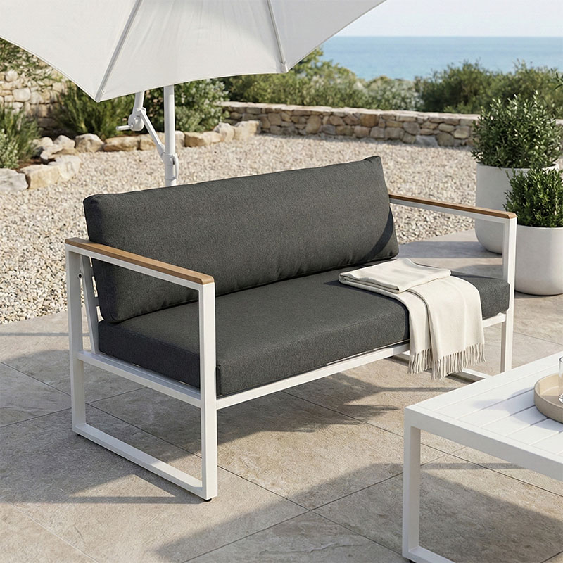 Μοντέρνος 2θέσιος Καναπές – Άνεση & Αντοχή σε Τέλεια Ισορροπία Αναβαθμίστε τον εξωτερικό ή εσωτερικό σας χώρο με τον 2θέσιο καναπέ Aurelio. Με στιβαρό ατσάλινο σκελετό και κομψές, μοντέρνες γραμμές, συνδυάζει στυλ, άνεση και μακροχρόνια αντοχή. Τα μπράτσα με επένδυση plywood προσθέτουν μια φυσική πινελιά, ενώ τα πλούσια μαξιλάρια εξασφαλίζουν μια premium εμπειρία καθίσματος. Τεχνικά χαρακτηριστικά: Στιβαρή Κατασκευή: Ατσάλινος σκελετός υψηλής ποιότητας (30?20?1.0mm & 20?20?0.9mm) για εξαιρετική αντοχή και σταθερότητα. Κομψή Λεπτομέρεια: Μπράτσα με plywood (3?1.3 cm) που χαρίζουν ζεστασιά και μοντέρνα αισθητική. Απόλυτη Άνεση: Μαξιλάρια καθίσματος και πλάτης με ύφασμα 100% πολυεστέρα και πυκνότητα αφρού 20 kg/m³ για μαλακό αλλά και υποστηρικτικό κάθισμα. Μοντέρνος Σχεδιασμός: Minimal σκελετός σε λευκή απόχρωση με ανθρακί μαξιλάρια για διαχρονική και ευέλικτη εμφάνιση. Σχεδιασμένος για αντοχή, φτιαγμένος για άνεση και έτοιμος να εντυπωσιάσει, ταιριάζει άψογα τόσο σε οικιακούς όσο και σε επαγγελματικούς χώρους. Διάσταση: Μήκος: 130 εκ. Πλάτος: 74 εκ. Ύψος: 63 εκ.