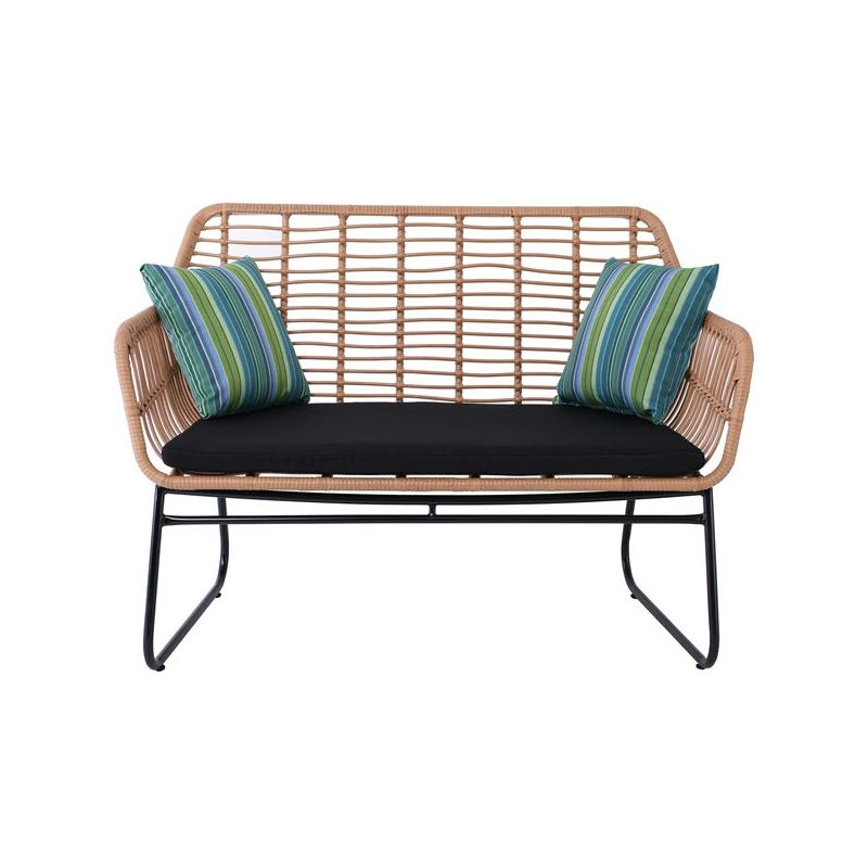 Καναπές Alessa pakoworld φυσικό rattan-λευκό ύφασμα με μαξιλάρια 200x100x76εκ