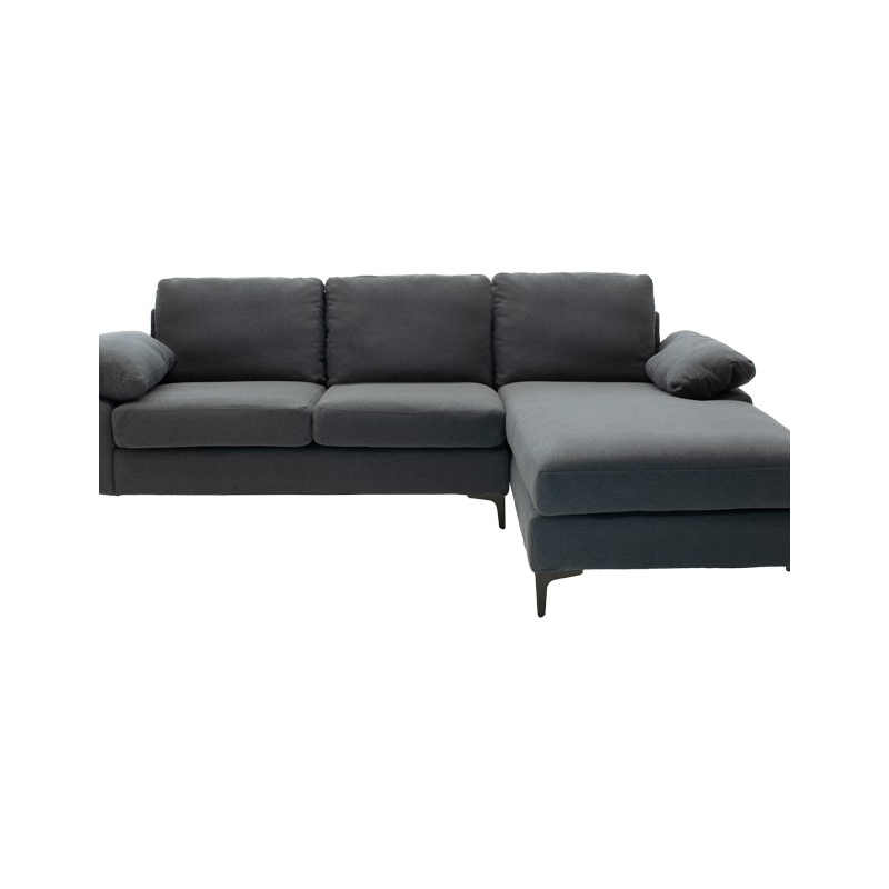 Γωνιακός καναπές Cohen pakoworld με αριστερή γωνία ύφασμα σε ανθρακί απόχρωση-πόδι μαύρο μέταλλο 240x159x83εκ