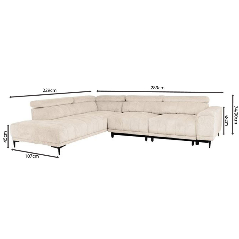 Γωνιακός καναπές αριστερή γωνία Boston pakoworld ύφασμα mocha-cream 280x225x90εκ