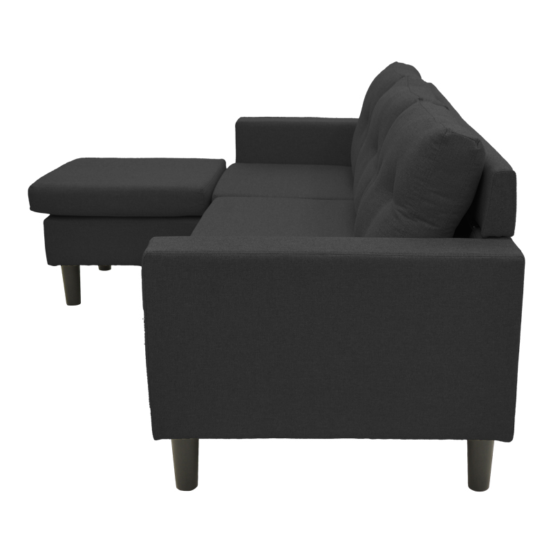 Γωνιακός καναπές αναστρέψιμος Maneli pakoworld ύφασμα μαύρο 196x138/77x82εκ