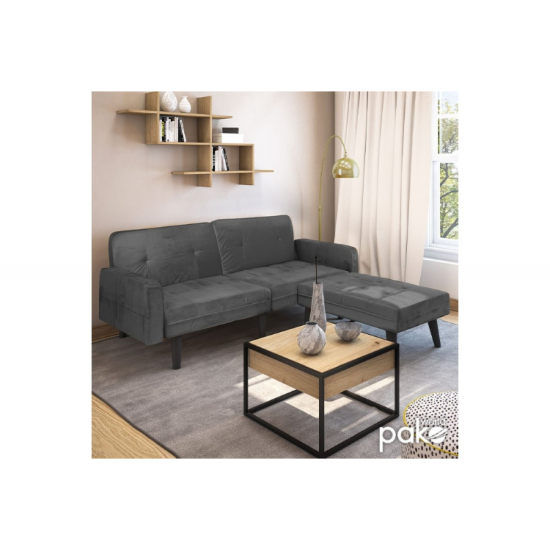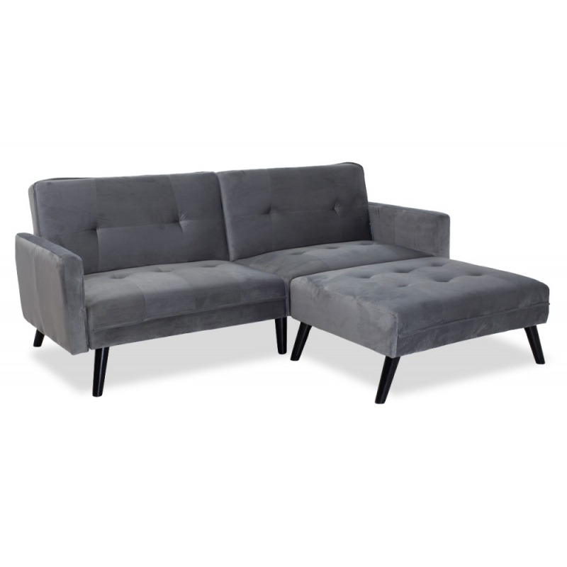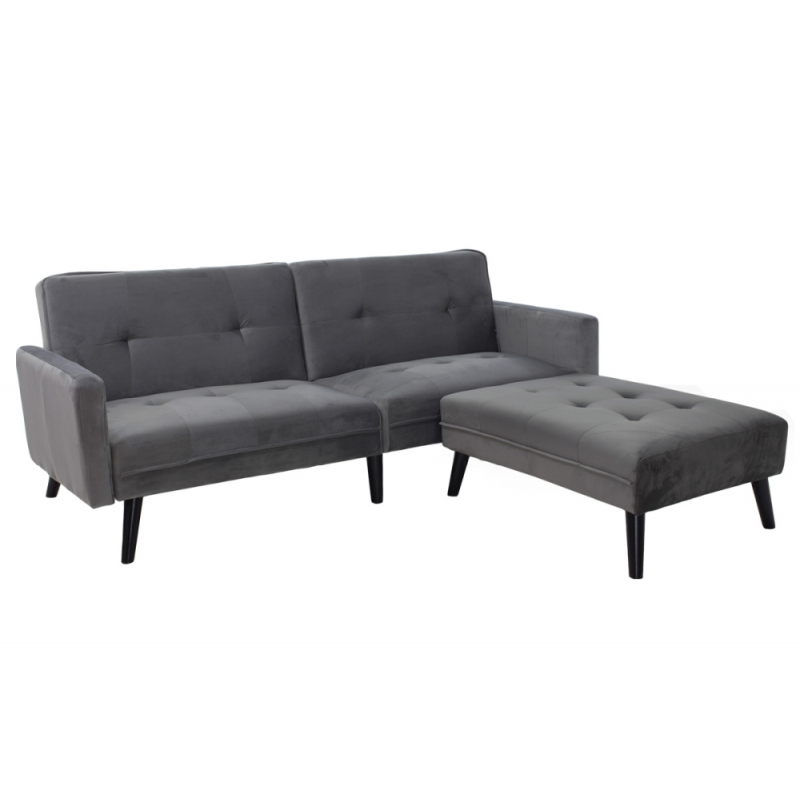 Ένας καναπές σχεδιασμένος με μοντέρνο design που αποπνέει πολυτέλεια, φέρει εύχρηστο μεταλλικό μηχανισμό ώστε να μετατρέπεται με μία απλή κίνηση σε κρεβάτι. Και εξτρά μεγάλο σκαμπό που αποτελεί προέκταση του καναπέ για να χαλαρώσετε ή να ξαπλώσετε.