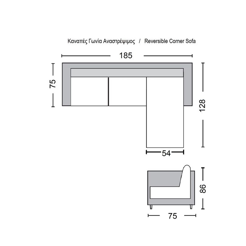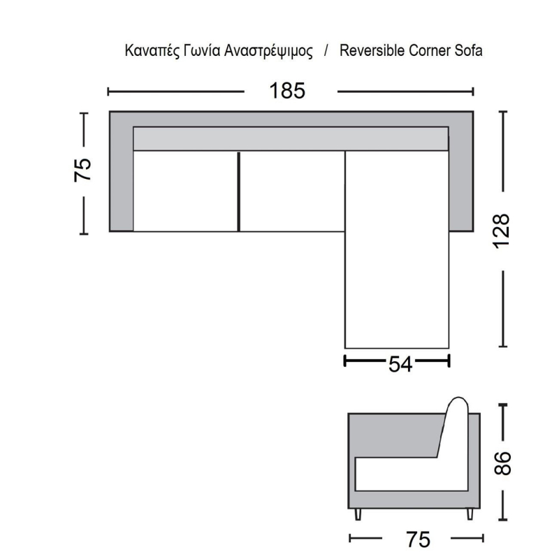 PORTO Καναπές Σαλονιού Καθιστικού, Γωνία Αναστρέψιμη Ύφασμα Cappuccino 185x128x75cm H.86cm