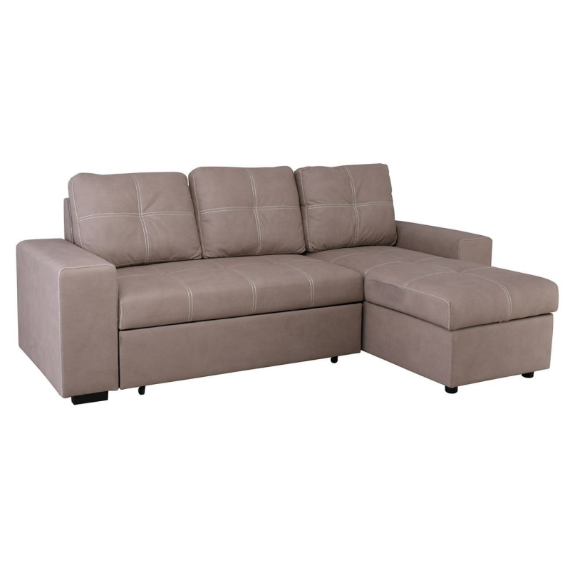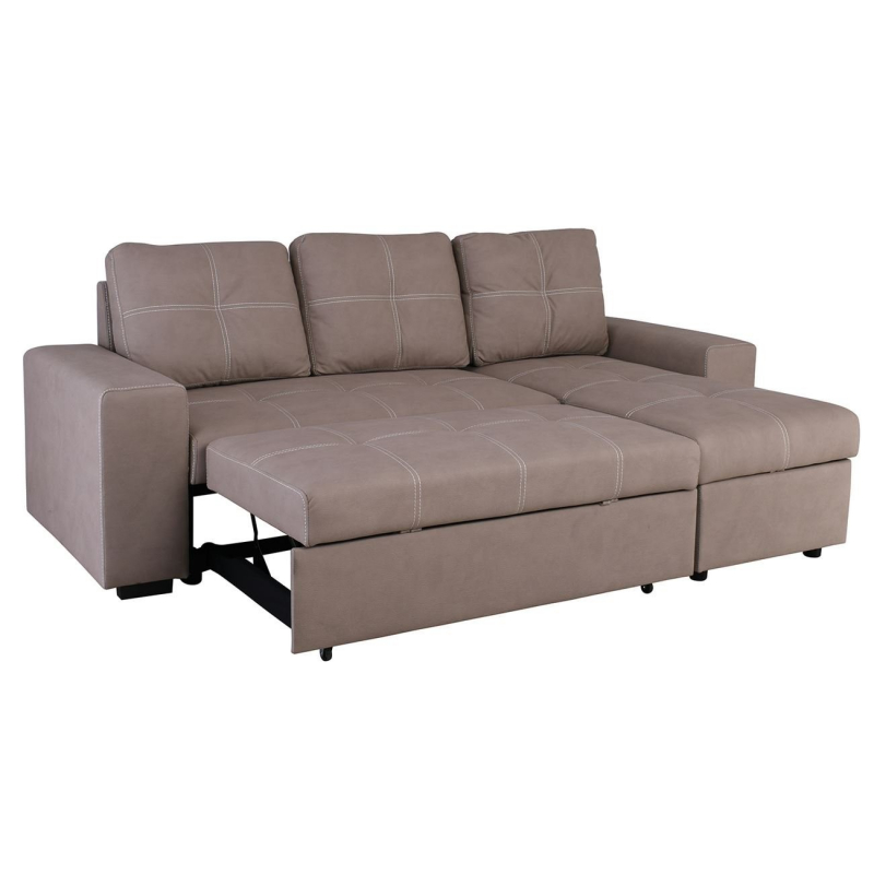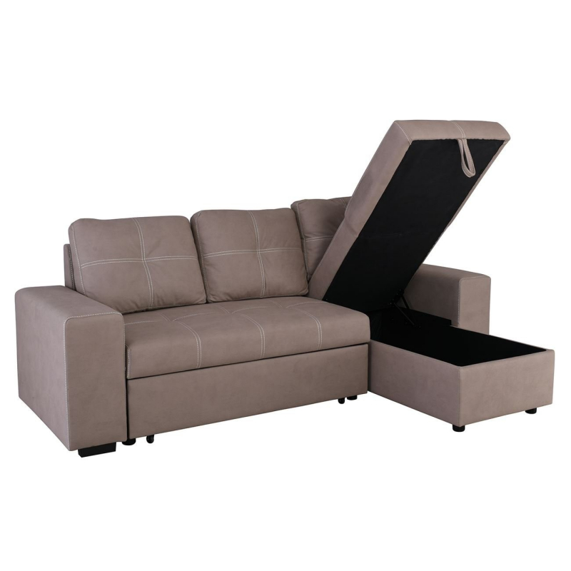 MONTREAL-Max Nabuk Καναπές Κρεβάτι Γωνία Αναστρέψιμη με Αποθηκευτικό Χώρο, Cappuccino 246x157xH94cm Bed:127x196cm