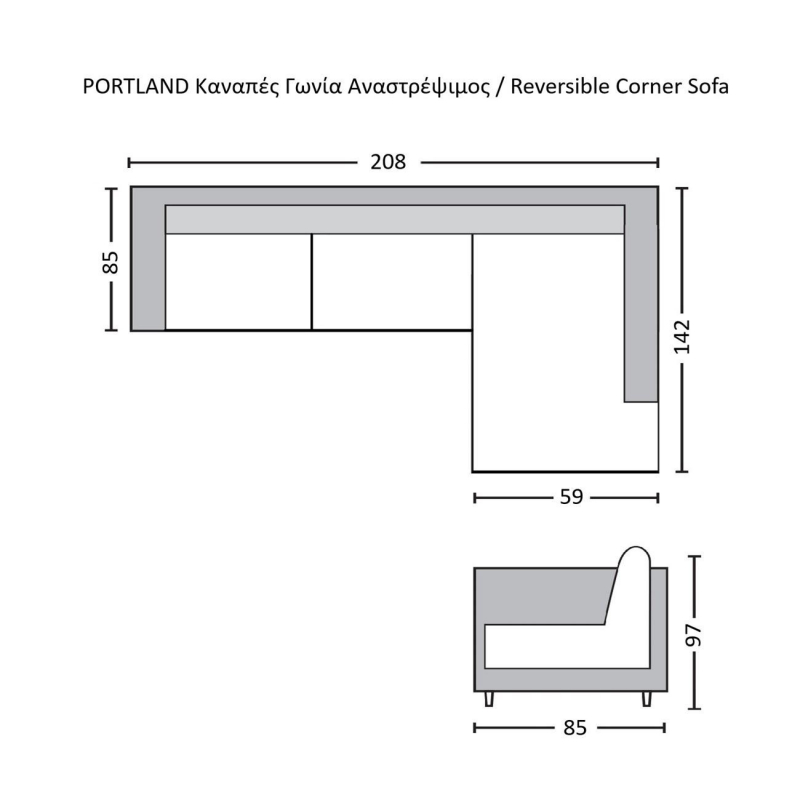PORTLAND Καναπές Γωνία Αναστρέψιμος Σαλονιού - Καθιστικού