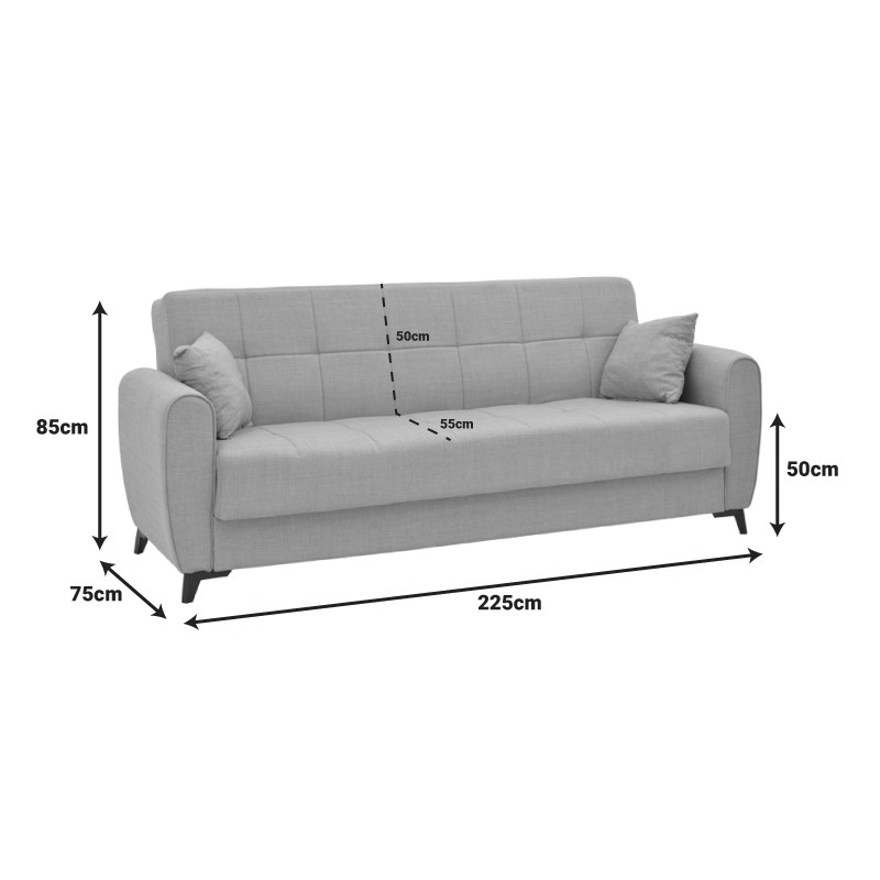 Καναπές-κρεβάτι με αποθηκευτικό χώρο τριθέσιος Lincoln pakoworld γκρι-μπεζ ύφασμα 225x75x85εκ