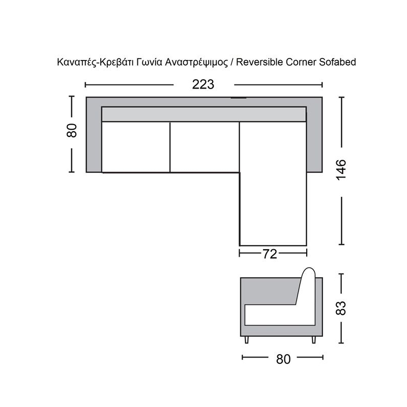MONTREAL Καναπές - Κρεβάτι Γωνία Αναστρέψιμη με Αποθηκευτικό Χώρο
