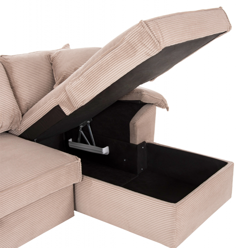 ΓΩΝΙΑΚΟΣ ΚΑΝΑΠΕΣ-ΚΡΕΒΑΤΙ ΜΕ ΑΠΟΘ.ΧΩΡΟ ALDO HM3276.01R ΜΠΕΖ ΥΦΑΣΜΑ 256x91-159x87Υεκ.