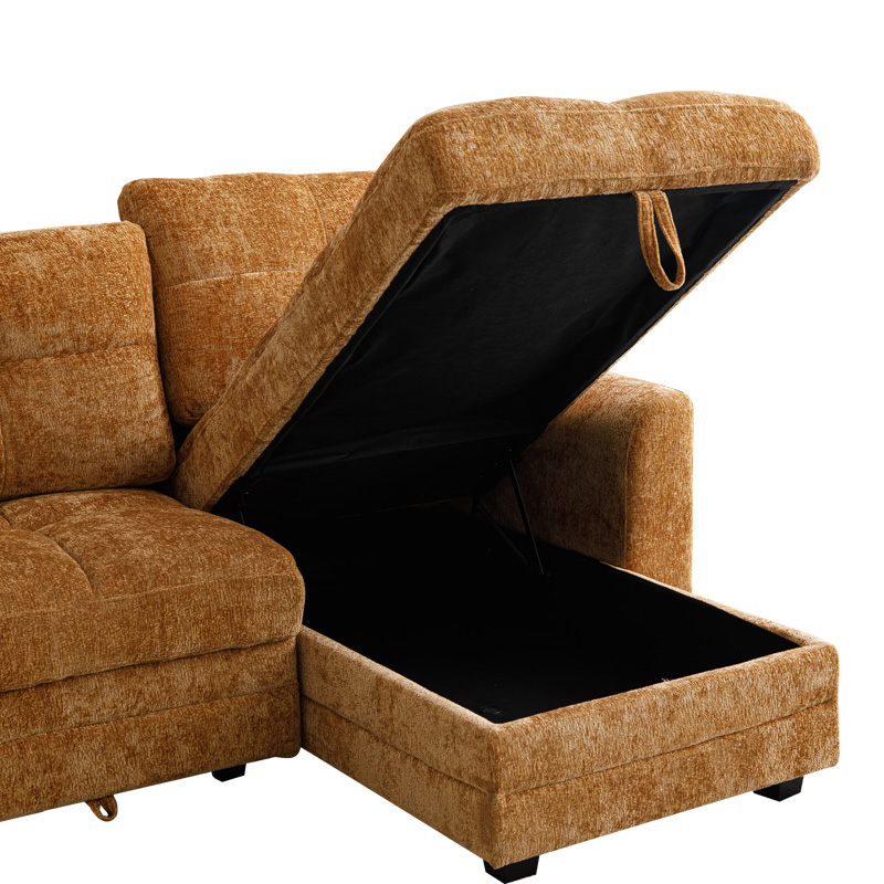 Γωνιακός αναστρέψιμος καναπές κρεβάτι Comfie pakoworld με αποθηκευτικό χώρο camel ύφασμα 267x159x97εκ