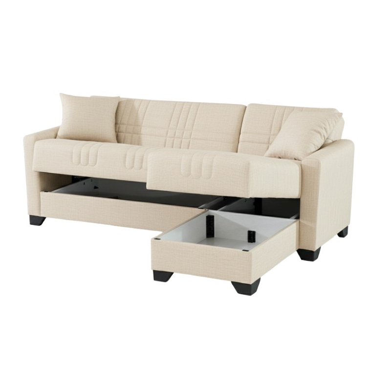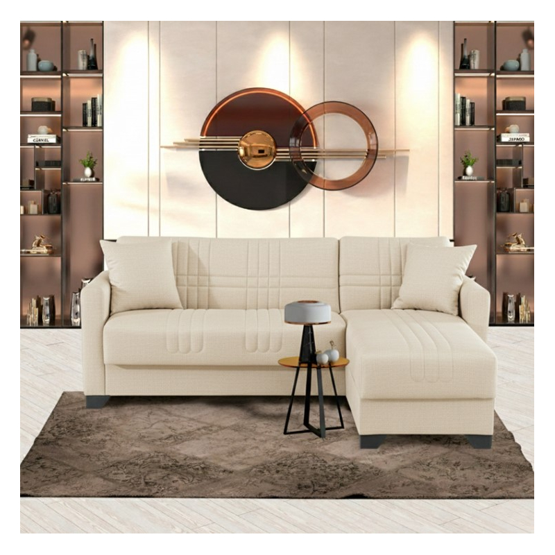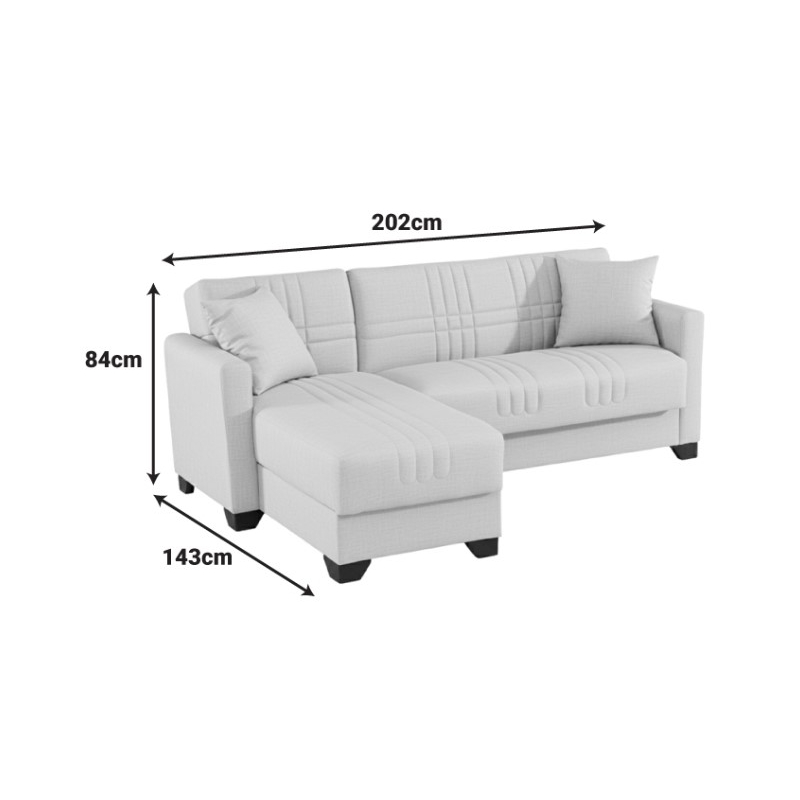 Αν ψάχνετε εναν ευέλικτο και λειτουργικό γωνιακό καναπέ-κρεβάτι, σχεδιασμένο για να καλύψει κάθε σας ανάγκη σε άνεση, αποθήκευση και ευελιξία διαρρύθμισης , ο Stashio ειναι για εσας. Τεχνικά χαρακτηριστικά Κατασκευασμένος εσωτερικά από ενισχυμένο σκελετό με αντοχή στο βάρος, στη φθορά και στο χρόνο. Εσωτερικά φέρει ελατήρια που βοηθούν τον καναπέ να διατηρήσει το σχήμα του και προσθέτουν αντοχή στην κατασκευή. Φέρει εύχρηστο μηχανισμό που με μία μόνο κίνηση ανασηκώνεται, μετατρέποντας τον καναπέ σε κρεβάτι και το αντίστροφο. Φέρει αποθηκευτικό χώρο-μπαούλο . Η κλειστή αποθήκευση των αντικειμένων σας γίνεται πιο εύκολη από ποτέ. Αναστρέψιμος ώστε να μπορεί άμεσα να προσαρμοστεί σε όποια γωνία σας εξυπηρετεί. Foam για άνεση στο κάθισμα. Επένδυση με εξαιρετικής ποιότητας ύφασμα μεγάλης ανθεκτικότητας σε κρεμ χρώμα Διάσταση προϊόντος: Διάσταση καναπέ: Μήκος: 202 εκ. Πλάτος: 143 εκ. Ύψος: 84 εκ. Διάσταση κρεβατιού 202x171x63 εκ