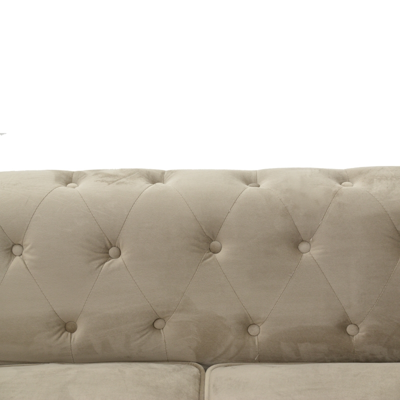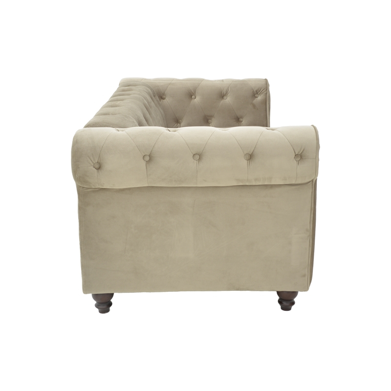 Kαναπές διθέσιος τ. Chesterfield pakoworld βελούδο σε μπεζ απόχρωση 160x84x67εκ