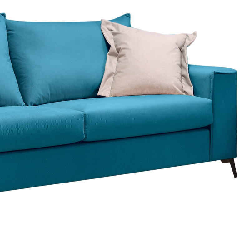 - Χρώμα καναπέ και μαξιλαριών πλάτης: Πετρόλ - Φέρει δύο διακοσμητικά μαξιλαράκια σε χρώμα μπεζ στον διθέσιο και δύο στον τριθέσιο καναπέ.