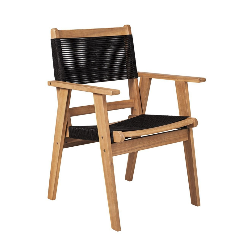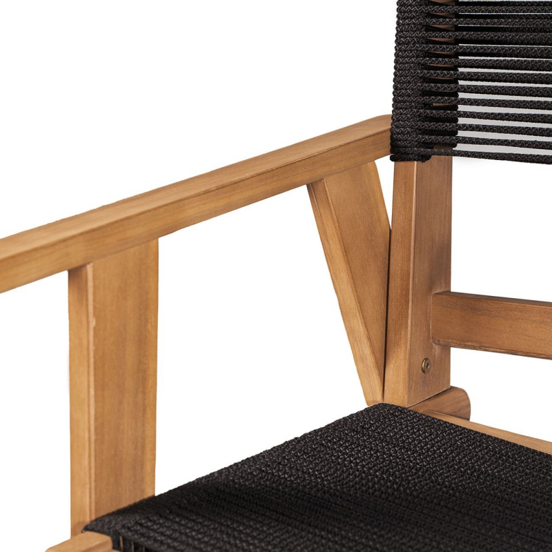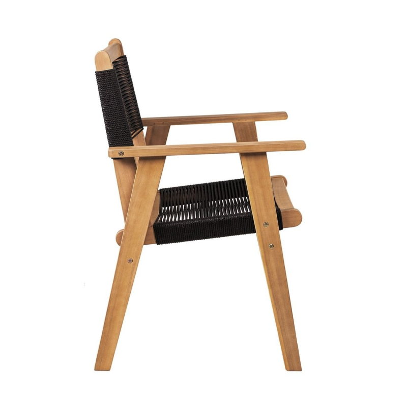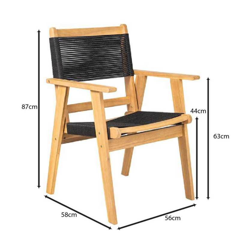 COFFEE Dining Πολυθρόνα Βεράντας - Κήπου, Ξύλο Ακακία Φυσικό, Rope Wicker Μαύρο 56x58x87cm