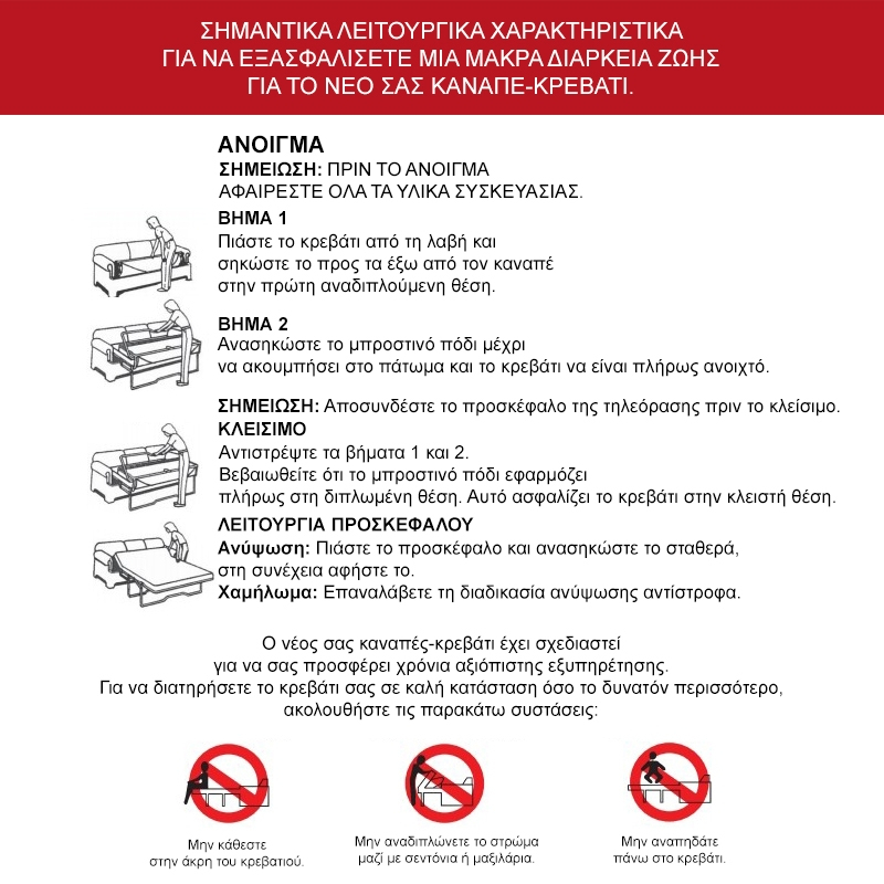 - Φέρει εύχρηστο μεταλλικό μηχανισμό που μετατρέπει τον καναπέ σε κρεβάτι.