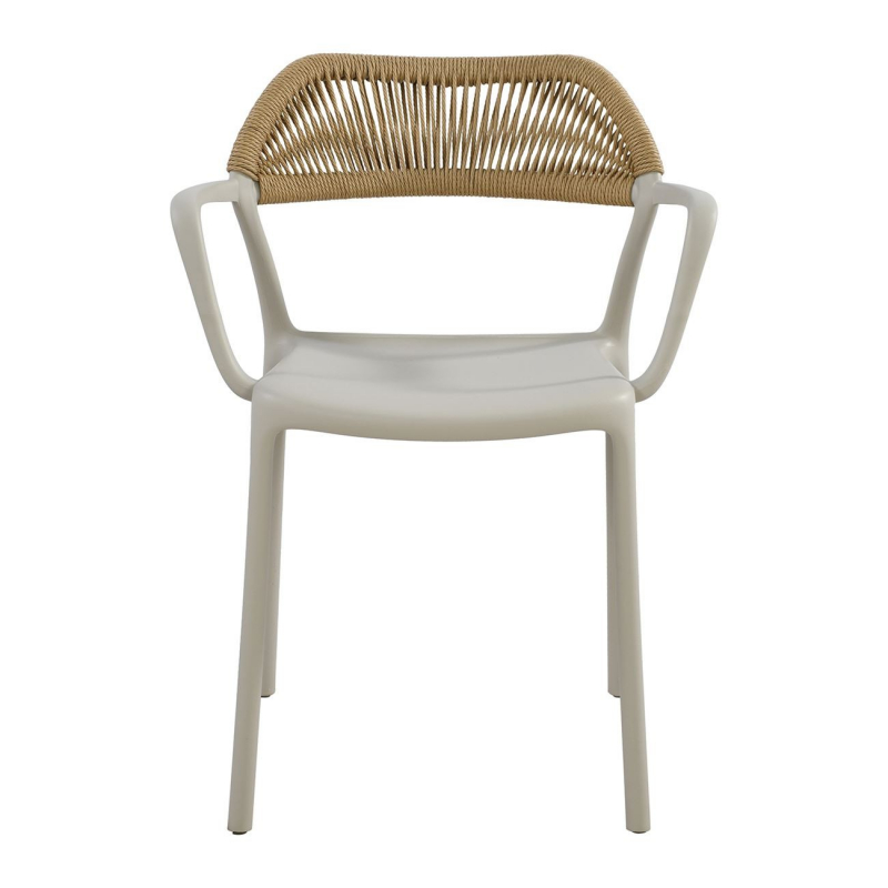 DOLLI Πολυθρόνα Στοιβαζόμενη, PP-UV Γκρι, Rope Wicker Φυσικό 58x53x77cm