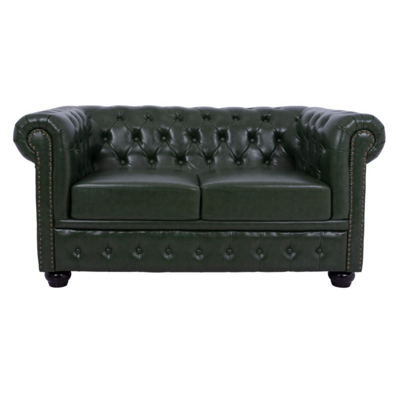 Καναπές διθέσιος τύπου Chesterfield, με τεχνόδερμα κυπαρισσί απόχρωση 150x90x72 εκ. Ένας κομψός, τύπου Chesterfield καναπές, διαθέτοντας διακοσμητικά κουμπιά στον σκελετό του, θα προσθέσει μια πινελιά πολυτέλειας στο καθιστικό σας. Αυτός ο διθέσιος καναπές, θα αποτελέσει ένα εξαιρετικό σημείο για να κουβεντιάζετε, να διαβάζετε, να παρακολουθείτε τηλεόραση ή απλά να χαλαρώνετε. Διαθέτοντας συμπαγές κλασικό σχέδιο, ο καναπές θα ταιριάξει ιδανικά σε κάθε διακόσμηση καθιστικού. Τα καμπυλωτά μπράτσα του προσφέρουν μεγαλύτερη άνεση και αναπαυτικότητα, ενώ τα διακοσμητικά τρουκς στην μπροστά πλευρά, τον κάνουν ξεχωριστό. Ο διθέσιος καναπές είναι επενδεδυμένος με τεχνόδερμα υψηλής ποιότητας, καθαρίζεται εύκολα, ενώ διαθέτει ενισχυμένα ξύλινα πόδια που τον καθιστούν ιδιαίτερα σταθερό και ανθεκτικό. Διαστάσεις: 150x90x72 εκ. Ύψος μπράτσων: 72 εκ. Ύψος καθίσματος: 44,5 εκ. Διαστάσεις καθίσματος: 98x52 εκ.