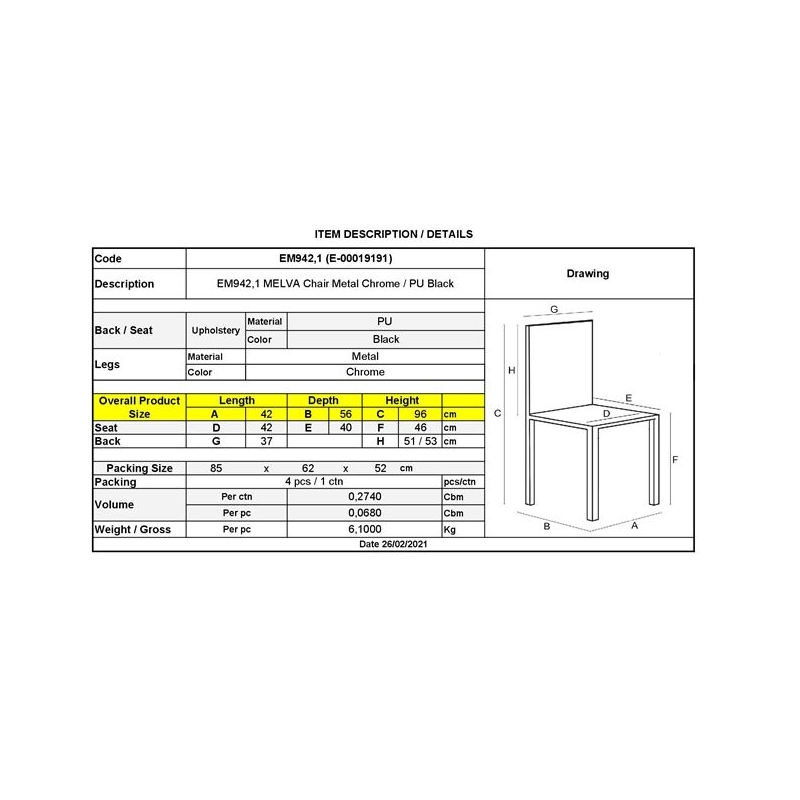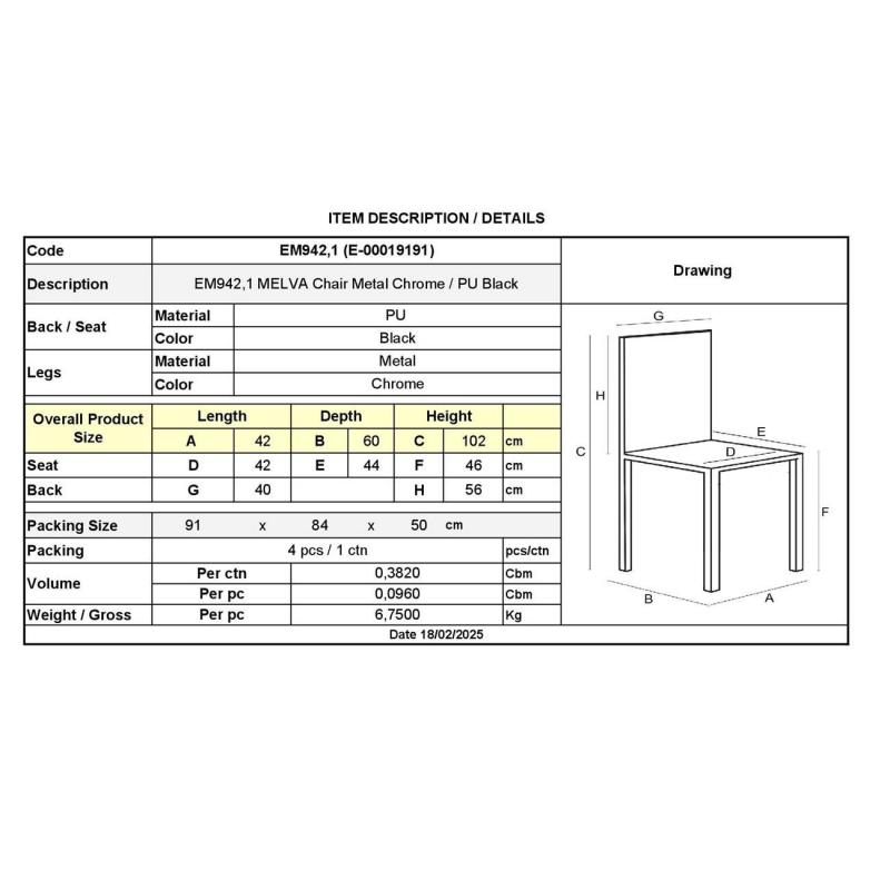 ΕΜ942,1 MELVA Καρέκλα Χρώμιο/Pu Μαύρο