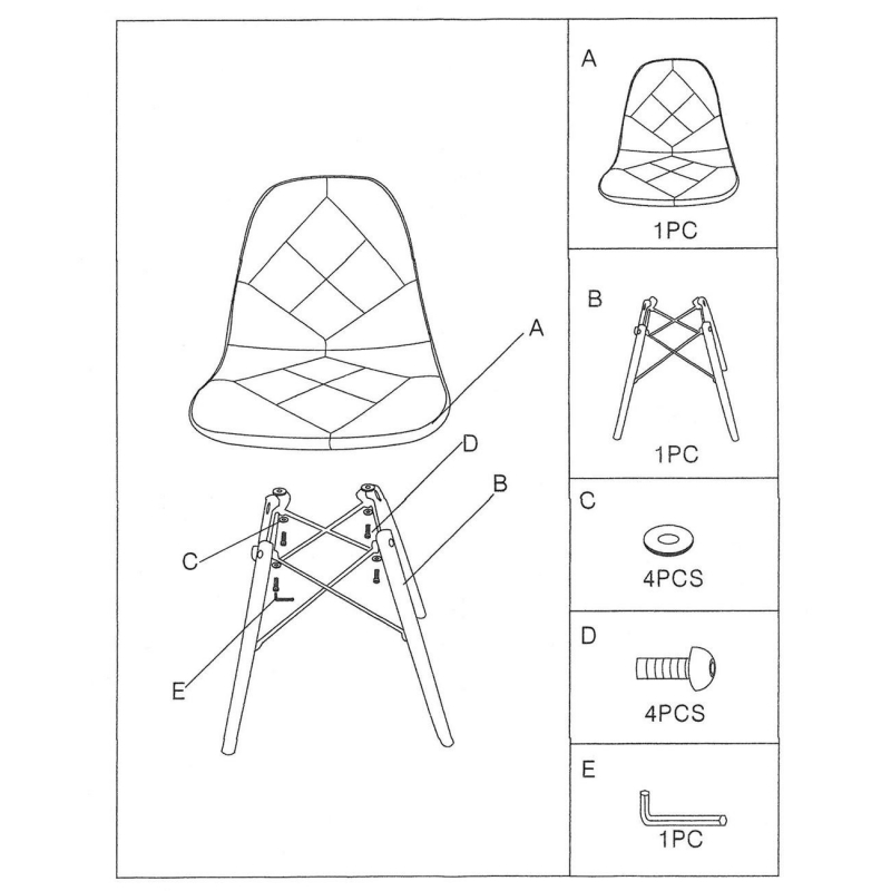 ART Wood Καρέκλα Τραπεζαρίας, Πόδια Οξιά, Κάθισμα PP με Ύφασμα Patchwork Black & White 47x52x84cm