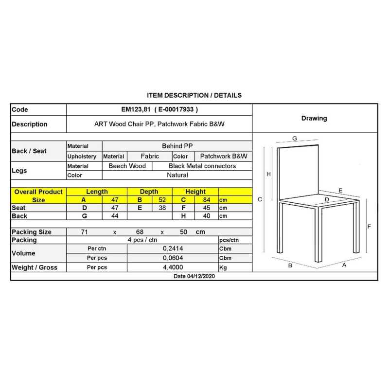 ΕΜ123,81 ART Wood Καρέκλα PP, Ύφασμα Patchwork B&W