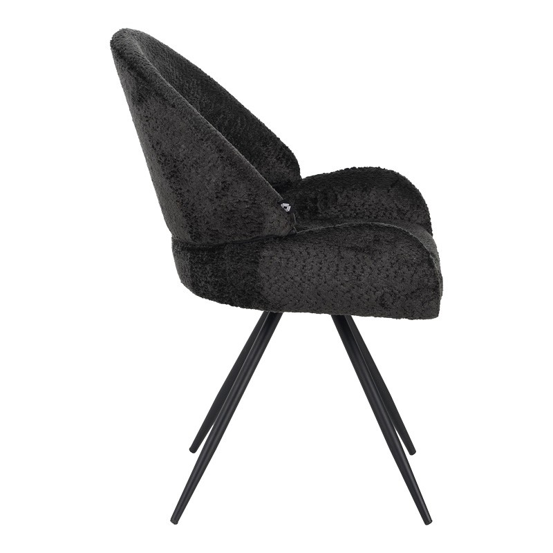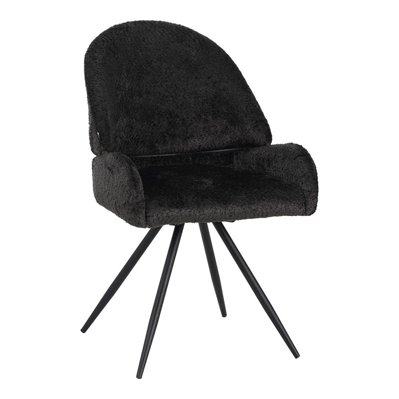 Καρέκλα περιστρεφόμενη Morea pakoworld μπουκλέ ύφασμα σε μαύρη απόχρωση με μαύρα μεταλλικά πόδια 55x63.5x89.5εκ