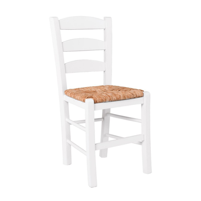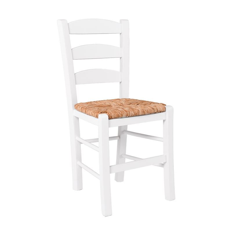 ΣΚΥΡΟΣ Καρέκλα Οξιά Βαφή Εμποτισμού Λάκα Άσπρο, Κάθισμα Ψάθα 41x43x89cm