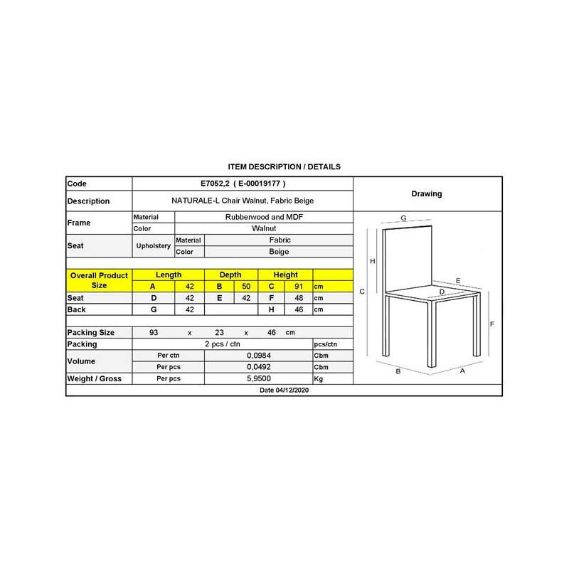 NATURALE Καρέκλα Καρυδί, Ύφασμα Μπεζ 42x50x91cm