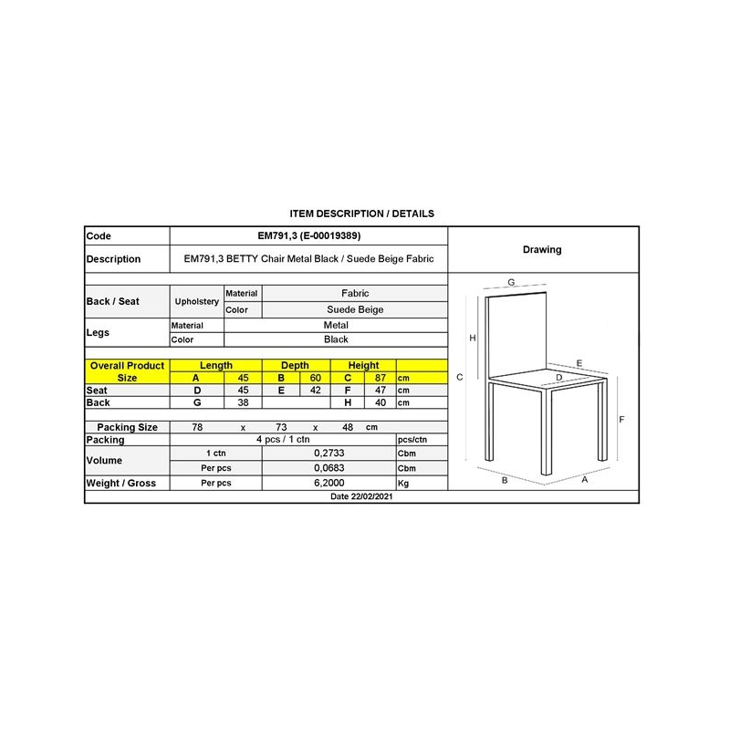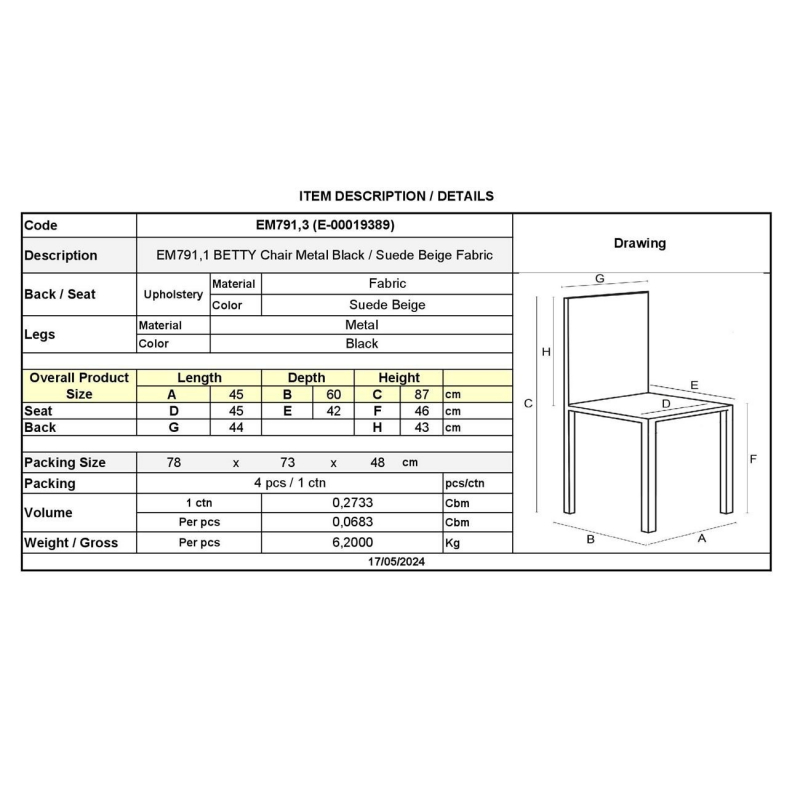ΕΜ791,3 BETTY Καρέκλα Μέταλλο Μαύρο/Ύφασμα Suede Μπεζ