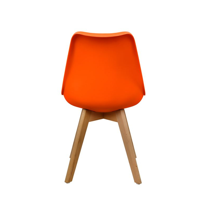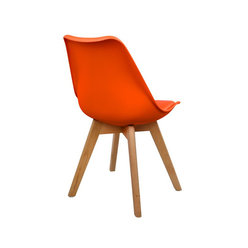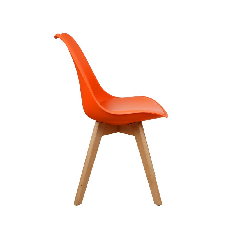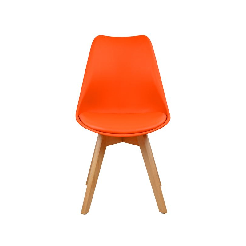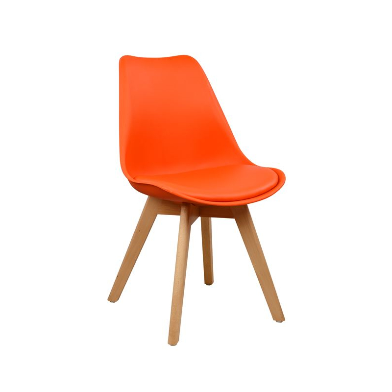 Κάθισμα: Υψηλής ποιότητας πολυπροπυλένιο με δερμάτινο PU μαξιλαράκι σε πορτοκαλί χρώμα.
